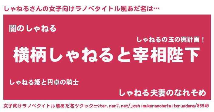 | 意味不明あだ名 | 『自称しゃねる』『しいたけ科しゃねる属』 |