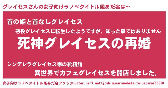 | 男性向けラノベタイトル風あだ名 | 『ノーゲーム・ノーグレイセス』 |