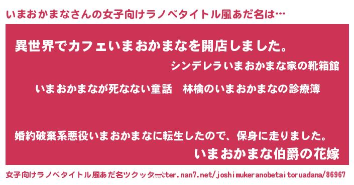 | 意味不明あだ名 | 『住所不定無職いまおかまな(93歳)』 |