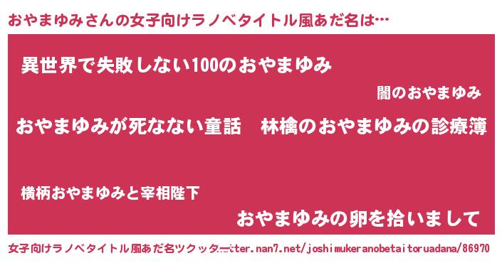 | 意味不明あだ名 | 『住所不定無職おやまゆみ(7歳)』 |
