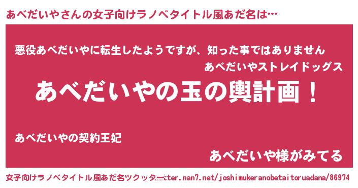 | ヒーロー風カッコイイあだ名 | 『仮面アベダー』『幻影騎士アベ』 |