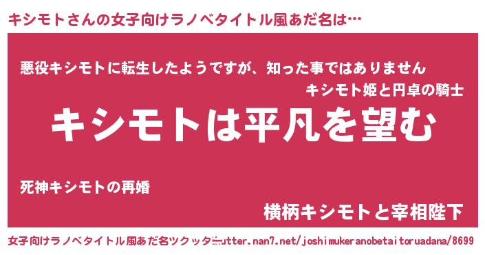 | 胡散臭い通販商品みたいなあだ名 | 『信頼と実績のペンダント…その名も「キシモト」』 |