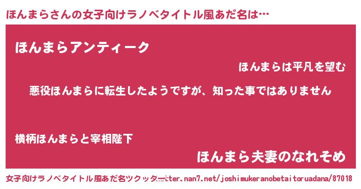 | 意味不明あだ名 | 『住所不定無職ほんまら(1歳)』 |