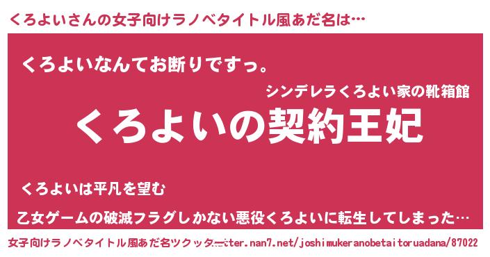 | 男性向けラノベタイトル風あだ名 | 『くろよいという概念が存在しない退屈な世界 』 |