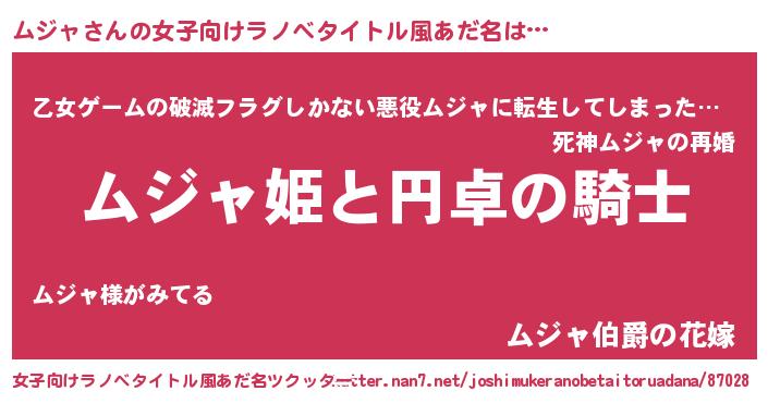 | 男性向けラノベタイトル風あだ名 | 『ムジャアートオンライン』 |