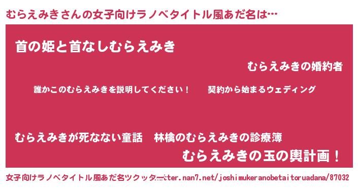 | 男性向けラノベタイトル風あだ名 | 『ムラエミキアートオンライン』 |