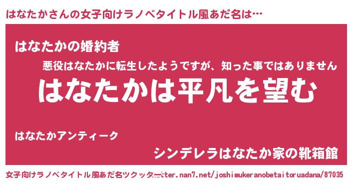 | ヒーロー風カッコイイあだ名 | 『黄金騎士ハナ』『ウルトラはなたかマン』 |