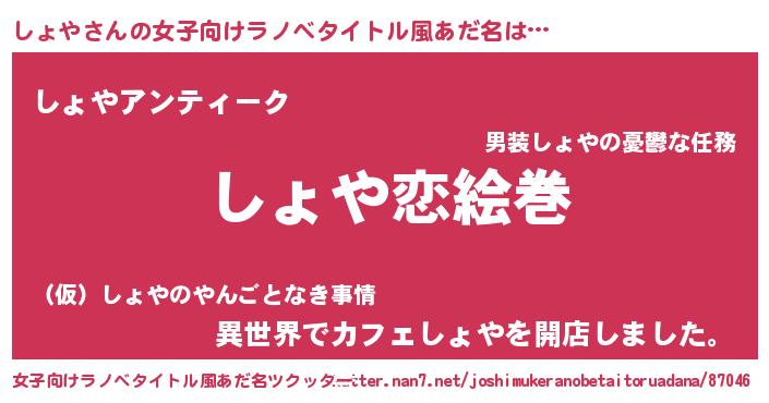 | 男性向けラノベタイトル風あだ名 | 『ノーゲーム・ノーショヤ』 |