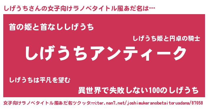 | 意味不明あだ名 | 『自称しげうち』『永久保存しげうち』 |