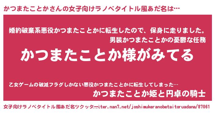 | 肩書あだ名 | 『かつまたことか班長』 |