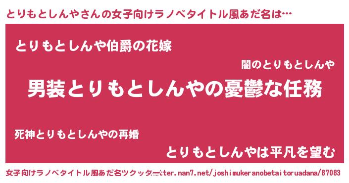 | 男性向けラノベタイトル風あだ名 | 『うちのとりもとしんやが世界を掌握している!』 |