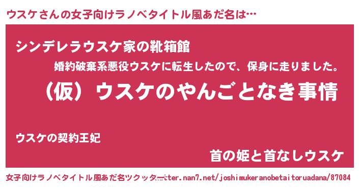 | ヘコむあだ名 | 『ウスふぇ~』『ウスケ(笑)』 |