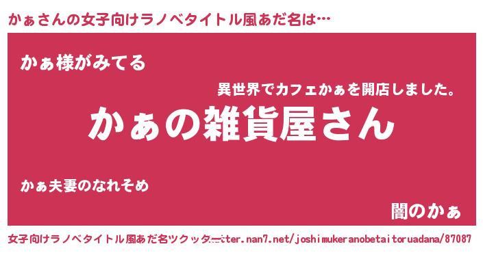 | 男性向けラノベタイトル風あだ名 | 『やはりかぁの青春ラブコメはまちがっている 』 |