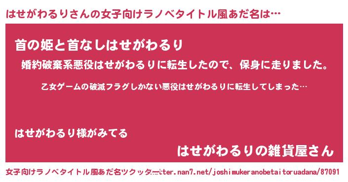 | 意味不明あだ名 | 『住所不定無職はせがわるり(68歳)』 |