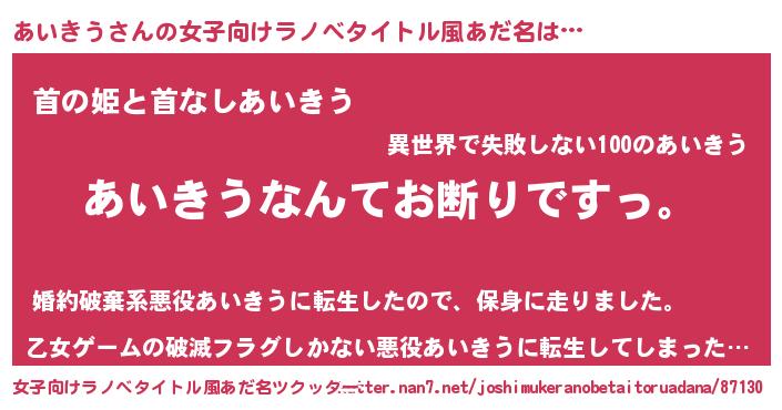 | 意味不明あだ名 | 『自称あいきう』『永久保存あいきう』 |