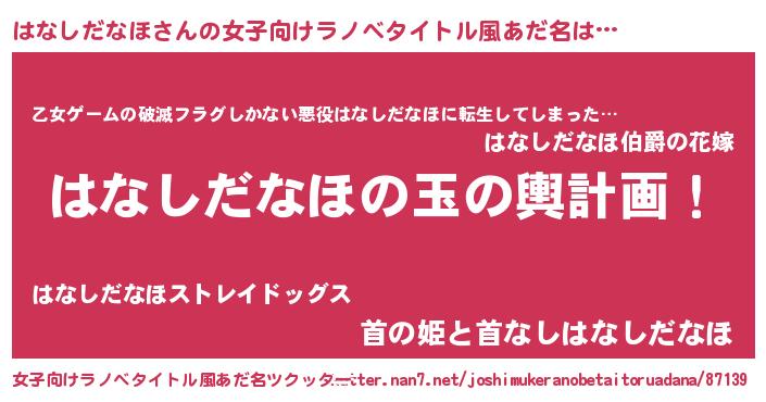はなしだなほさんの女子向けラノベタイトル風あだ名