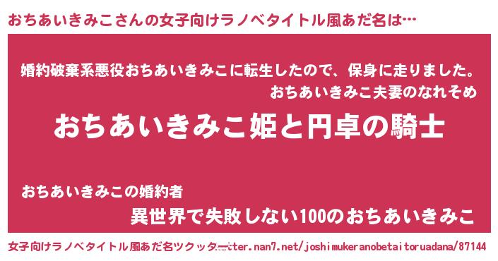 | 男性向けラノベタイトル風あだ名 | 『オチアイキミコアートオンライン』 |