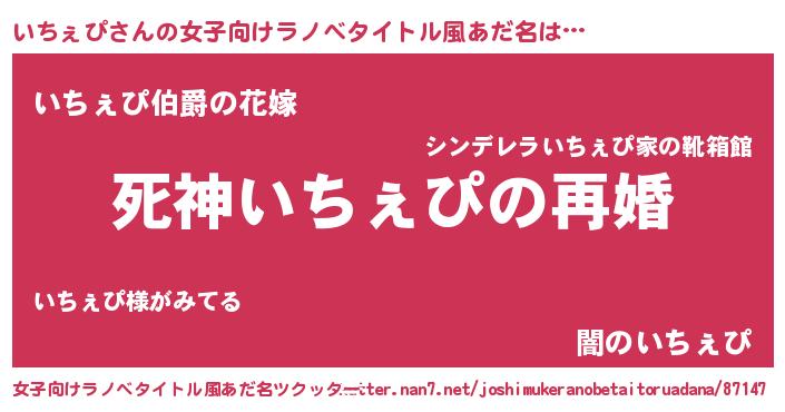 | ファンタジー風あだ名 | 『クインイット』『エターナルイチェピー』 |