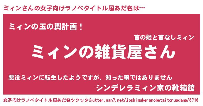 | 男性向けラノベタイトル風あだ名 | 『やはりミィンの青春ラブコメはまちがっている 』 |