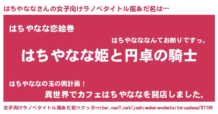 | 男性向けラノベタイトル風あだ名 | 『はちやななの憂鬱』 |