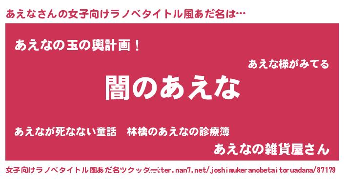 | ヒーロー風カッコイイあだ名 | 『最強戦士アエナ』『ウルトラあえなマン』 |