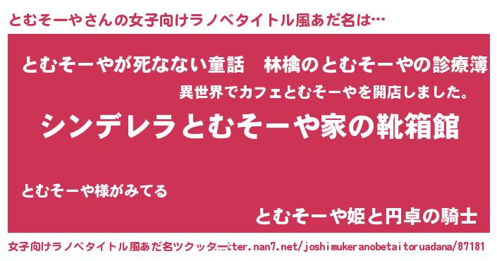 | 意味不明あだ名 | 『住所不定無職とむそーや(85歳)』 |