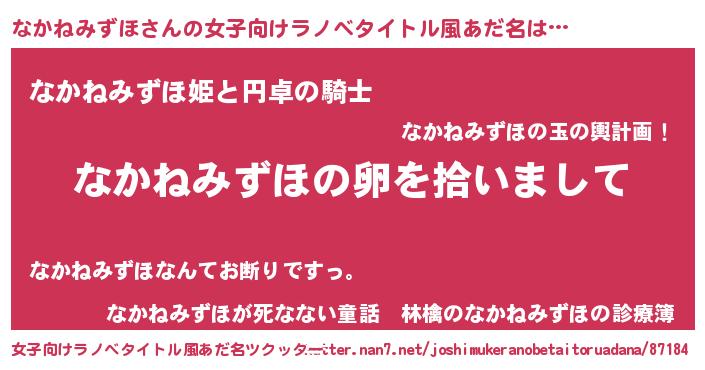 | 男性向けラノベタイトル風あだ名 | 『ダンジョンになかねみずほを求めるのは間違っているだろうか』 |
