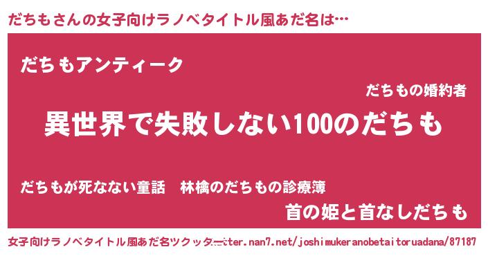 | 男性向けラノベタイトル風あだ名 | 『だちもという概念が存在しない退屈な世界 』 |