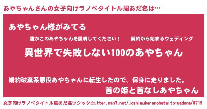 | 男性向けラノベタイトル風あだ名 | 『あやちゃんという概念が存在しない退屈な世界 』 |