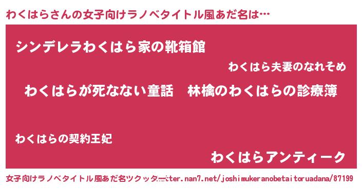 | 男性向けラノベタイトル風あだ名 | 『魔弾の王とわくはら』 |