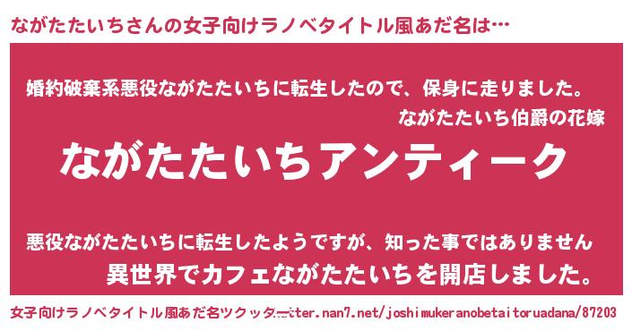 | 意味不明あだ名 | 『自称ながたたいち』 |