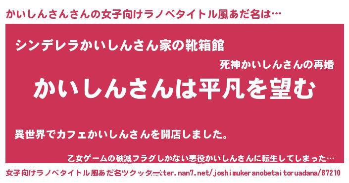 | 胡散臭い通販商品みたいなあだ名 | 『信頼と実績のペンダント…その名も「かいしんさん」』 |