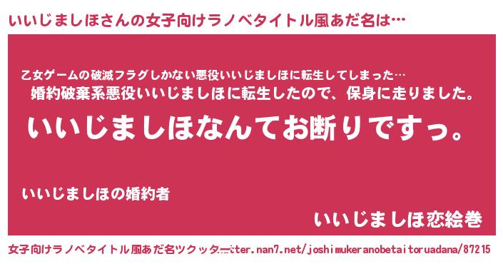 | 男性向けラノベタイトル風あだ名 | 『魔法科高校のいいじましほ』 |