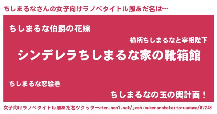 | 意味不明あだ名 | 『ちしまるなフォーエバー』 |