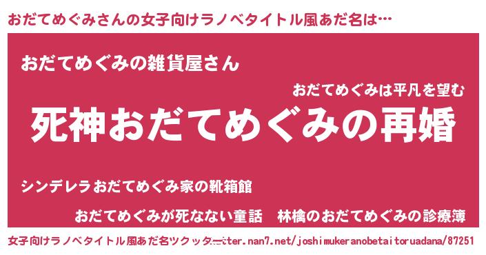 | 胡散臭い通販商品みたいなあだ名 | 『モンドセレクションを受賞した隕石のかけら…その名も「おだてめぐみ」』 |