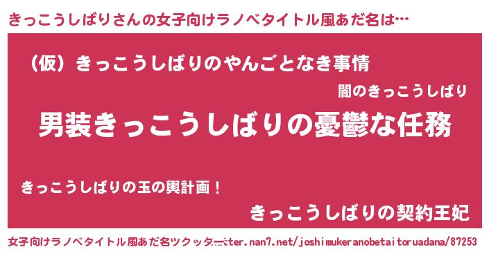 | 男性向けラノベタイトル風あだ名 | 『うちのきっこうしばりが世界を掌握している!』 |