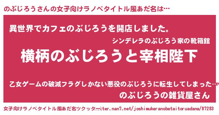 | 男性向けラノベタイトル風あだ名 | 『のぶじろうに滅ぼされるだけの簡単なお仕事です』 |