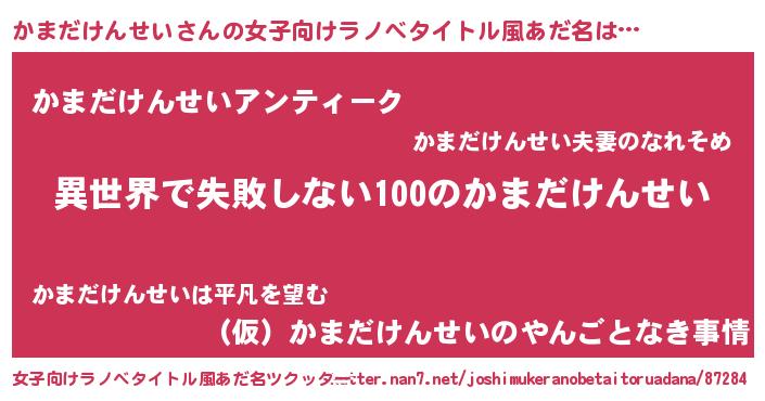 | 男性向けラノベタイトル風あだ名 | 『かまだけんせいという概念が存在しない退屈な世界 』 |