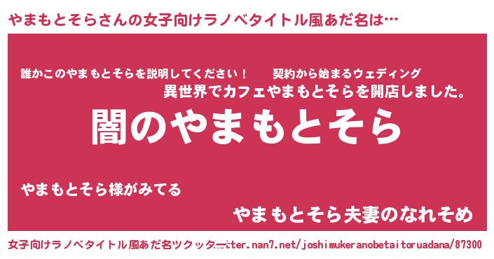 | 男性向けラノベタイトル風あだ名 | 『Re:やまもとそらから始める異世界生活』 |