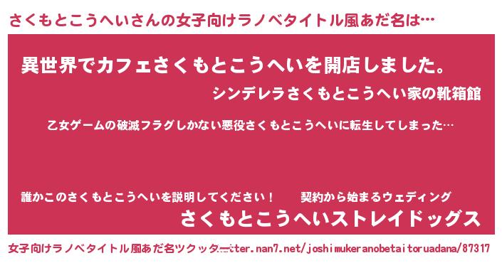 | 男性向けラノベタイトル風あだ名 | 『この素晴らしい世界にさくもとこうへいを!』 |