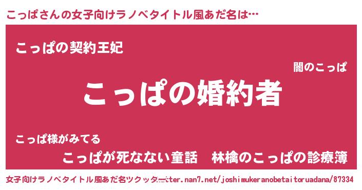 | 男性向けラノベタイトル風あだ名 | 『うちの娘の為ならば、俺はもしかしたらこっぱも倒せるかもしれない。』 |