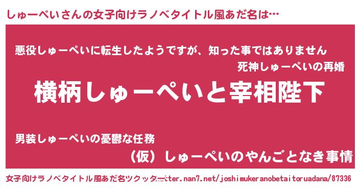 | 意味不明あだ名 | 『住所不定無職しゅーぺい(86歳)』 |