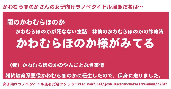 | 男性向けラノベタイトル風あだ名 | 『かわむらほのかの嫁は女の子じゃないと思った?』 |