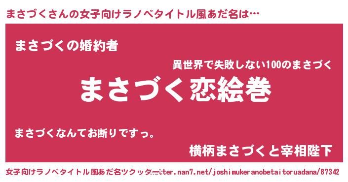 | 男性向けラノベタイトル風あだ名 | 『ノーゲーム・ノーマサヅク』 |