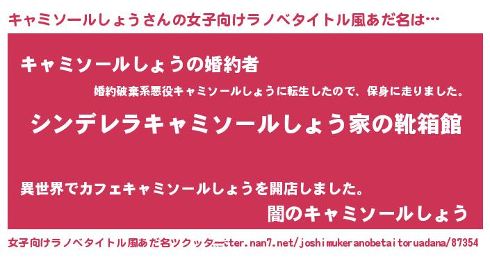 | 男性向けラノベタイトル風あだ名 | 『冴えないキャミソールしょうの育てかた』 |