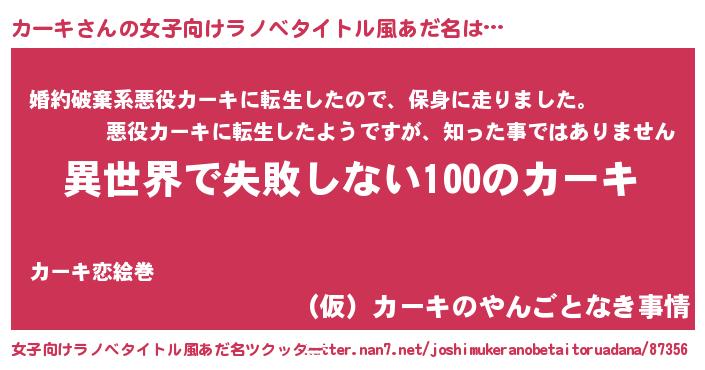 | 胡散臭い通販商品みたいなあだ名 | 『絶対に幸福をもたらす健康食品…その名も「カーキ」』 |