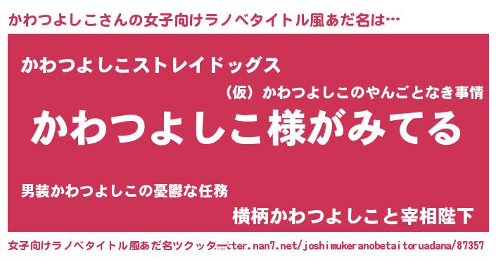 | 男性向けラノベタイトル風あだ名 | 『かわつよしこの嫁は女の子じゃないと思った?』 |