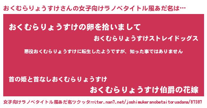 | 男性向けラノベタイトル風あだ名 | 『この素晴らしい世界におくむらりょうすけを!』 |