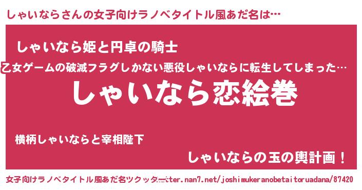 | 男性向けラノベタイトル風あだ名 | 『ノーゲーム・ノーシャイナラ』 |