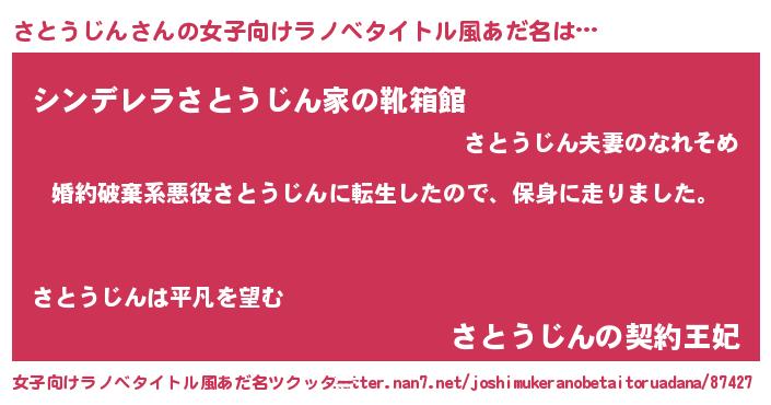 | 胡散臭い通販商品みたいなあだ名 | 『絶対に幸福をもたらす水素水…その名も「さとうじん」』 |